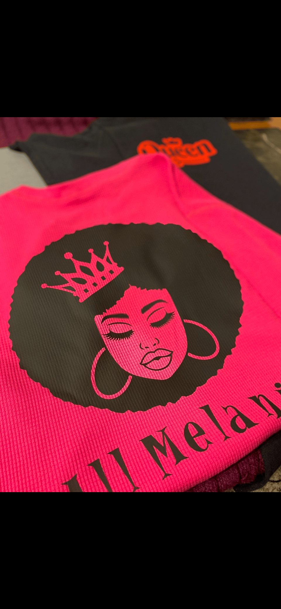 A t-shirt to show off ALL of your Melanin. (Available colors are white, black, and pink) Please leave which color you would like in the notes section at checkout.